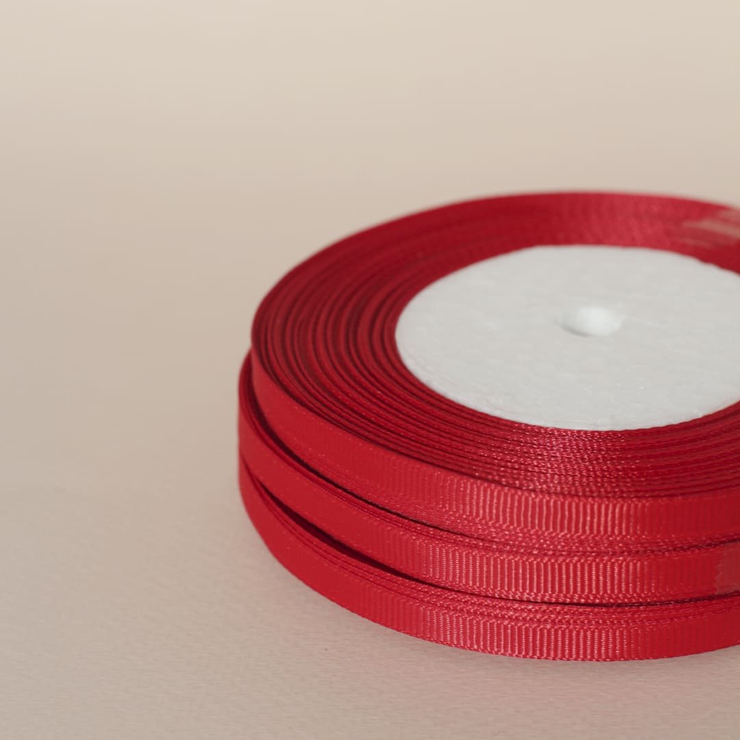 Репсова стрічка червоного кольорув рулоні 23 метри, шириною в 0,6 см. Чудово підійде для пакування подарунків, букетів та святкових смаколиків